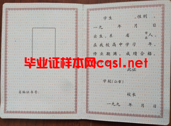 吉林高中毕业证证书样本模板